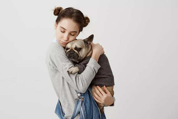 Just like humans dogs can feel anxious or scared. Thunder fireworks or staying alone can make them nervous. A gentle hug can work like comfort therapy. Your warmth makes them feel protected and calm.