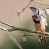 Barn Swallows are migratory birds known for their forked tails and are highly active during the summer in North America, pursuing insects with incredible speed and agility. These skilled aerial hunters help control fly, moth, and mosquito populations, contributing to a more pleasant outdoor experience for humans. Highly social, they often form small colonies, protecting each other's nests and communicating with various calls and chirps. By the end of summer, they gather in large numbers on electricity lines and fences in preparation for their long migration to warmer regions.
