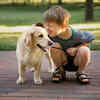 Happy Child Bonding with Golden Retriever